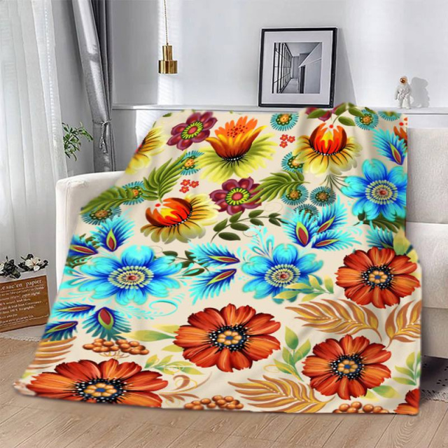 Плед 3D патриотический в Петриковской росписи Цветочная долина 2653_B 12575 135х160 см