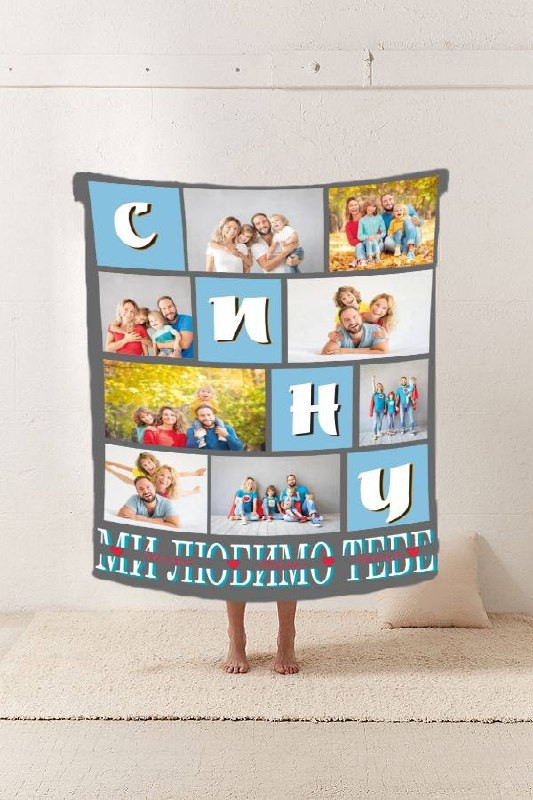 Плед 3D со своим фото на 8 фото Сын "Ми любимо тебе" с яркой печатью станет отличным подарком близкому человеку, порадует взгляд и согреет прохладными вечерами. Теплый, мягкий и очень приятный на ощупь, яркий подарочный плед с индивидуальным изображением согреет не только тело, но и душу.