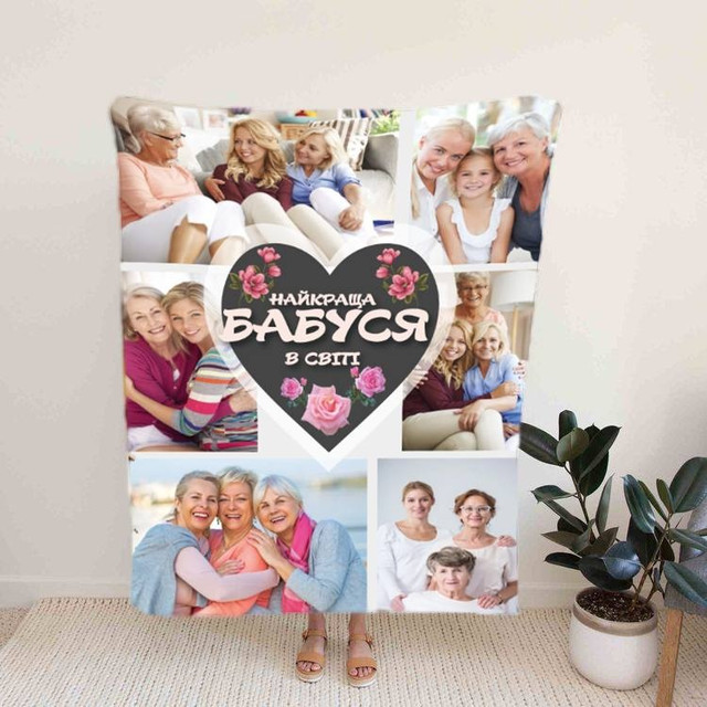 Плед 3D со своим фото «Найкраща бабуся в світі» на 8 фото с яркой печатью станет отличным подарком близкому человеку, порадует взгляд и согреет прохладными вечерами. Теплый, мягкий и очень приятный на ощупь, яркий подарочный плед с индивидуальным изображением согреет не только тело, но и душу.