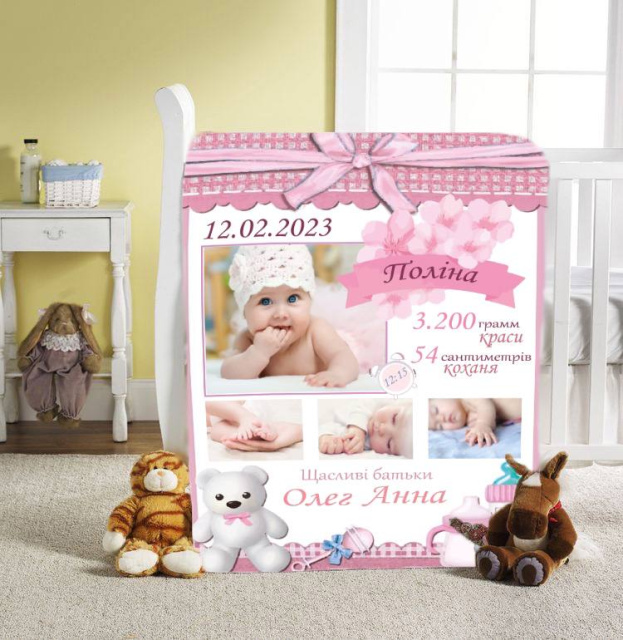 Плед 3D с пожеланиями метрика с яркой печатью станет отличным подарком близкому человеку, порадует взгляд и согреет прохладными вечерами. Теплый, мягкий и очень приятный на ощупь, яркий подарочный плед с индивидуальным изображением согреет не только тело, но и душу.
