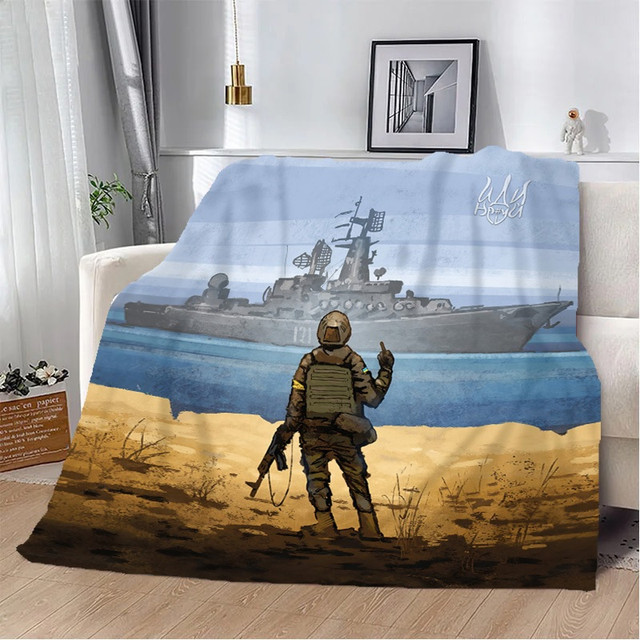 UA MarketКиевMizapShopТовары и услугиДомашний текстильПледы 3DПледы 3D с принтамиПледы с принтами ПатриотическиеПлед патриотический 3D Рyсский военный корабль, иди..... 20222358_B 10663 135х160 см