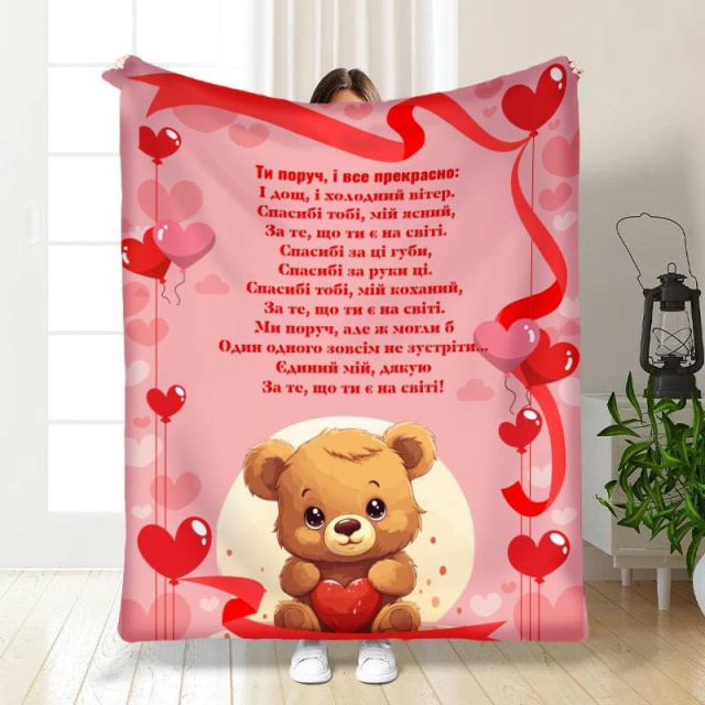 Плед 3D с пожеланиями «Ти поруч, і все чудово» 3287_B 15596 135х160 см