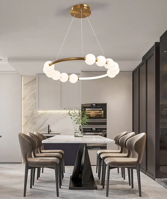 Подвесная Led люстра в виде бус, плафоны шарики диаметром 8 см, встроенные светодиоды, нейтральный свет 4000k, мощность 60 вт, крепление к потолку на крестовину, основа диаметром 13 см.