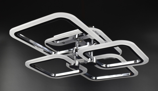 Данная люстра имеет 2 цвета свечения и 5 режимов включения (3 режима основного освещения, ночной режим, 3-х цветная ночная подсветка и режим плавной регулировки яркости). Рассчитана на освещение помещения площадью 16-18 кв.м.