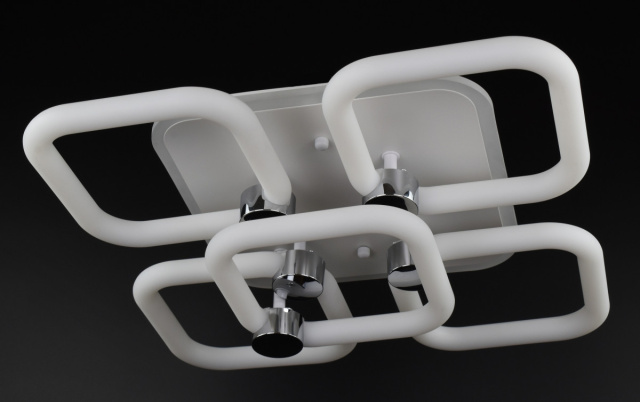 Данная люстра имеет имеет 3-х цветную подсветку Rgb, 2 цвета свечения и 5 режимов включения (3 режима основного освещения, ночной режим и режим плавной регулировки яркости). Крепления к потолку на планку, основа размером 19х19 см. Рассчитана на освещение помещения площадью 14-16 кв.м.