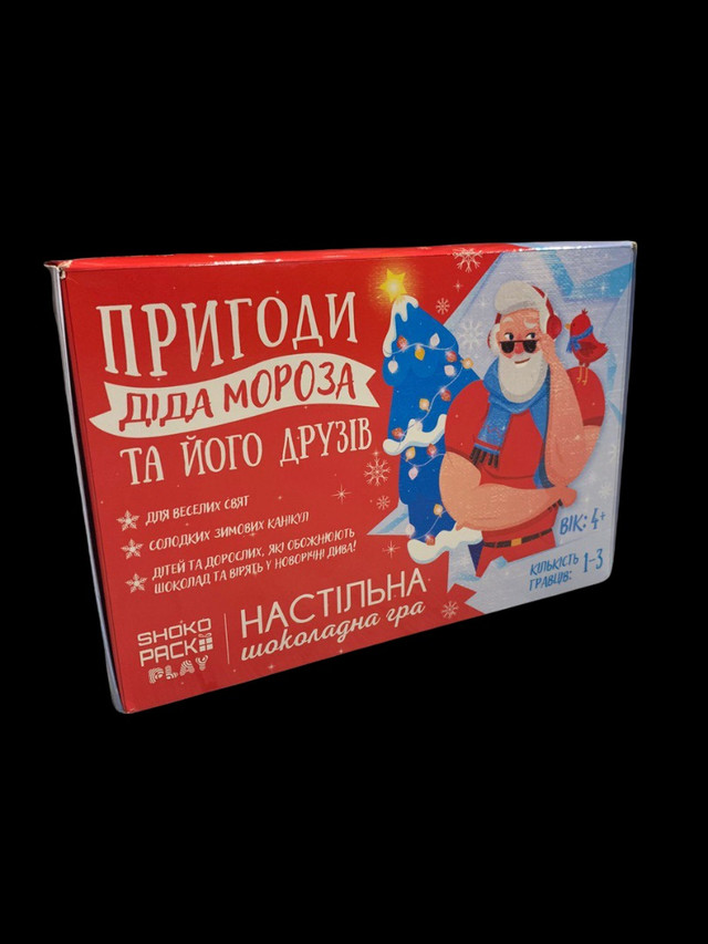 Настольная игра "Пригоди Діда Мороза" – это подарочный набор из 20 молочных шоколадок с настоящим игровым полем. Покупаешь коробку молочного шоколада – получаешь в подарок увлекательную настольную игру и еще больше ярких эмоций для всей компании!