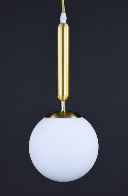 Подвесной светильник на одну лампочку, корпус металлический, высота регулируеться, плафон стеклянный диаметром 15 см, патрон E27 (стандарт), крепление к потолку на планку, основа диаметром 10 см.
