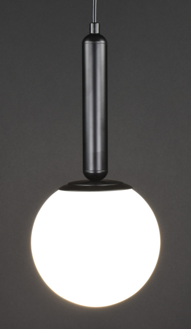 Подвесной светильник на одну лампочку, высота регулируеться, корпус металлический, плафон стеклянный диаметром 15 см, патрон E27, крепление к потолку на планку, основа диаметром 10 см.