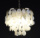 Подвесная люстра, корпус металлический, высота регулируеться, три патрона E14, подвесы из стеклянных пластин, крепление к потолку на планку, основа диаметром 14 см.